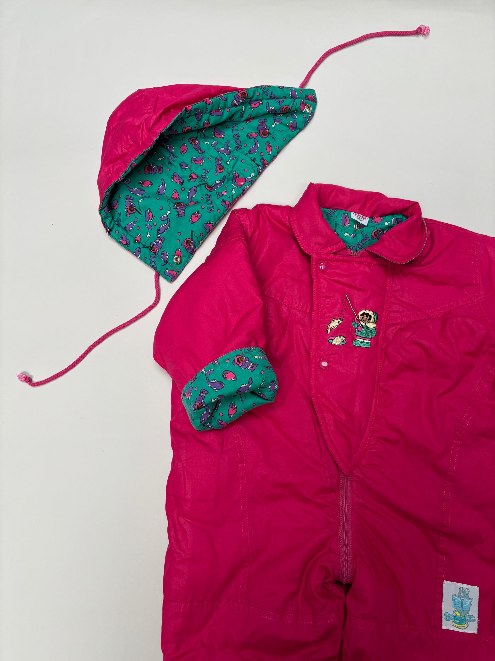 Mooie roze kleur, met verwijderbare kap. Niet super super warm, eerder een herfstig pak voor temperaturen boven 0. Ideaal voor in de speeltuin/op de fiets of in de buggy.