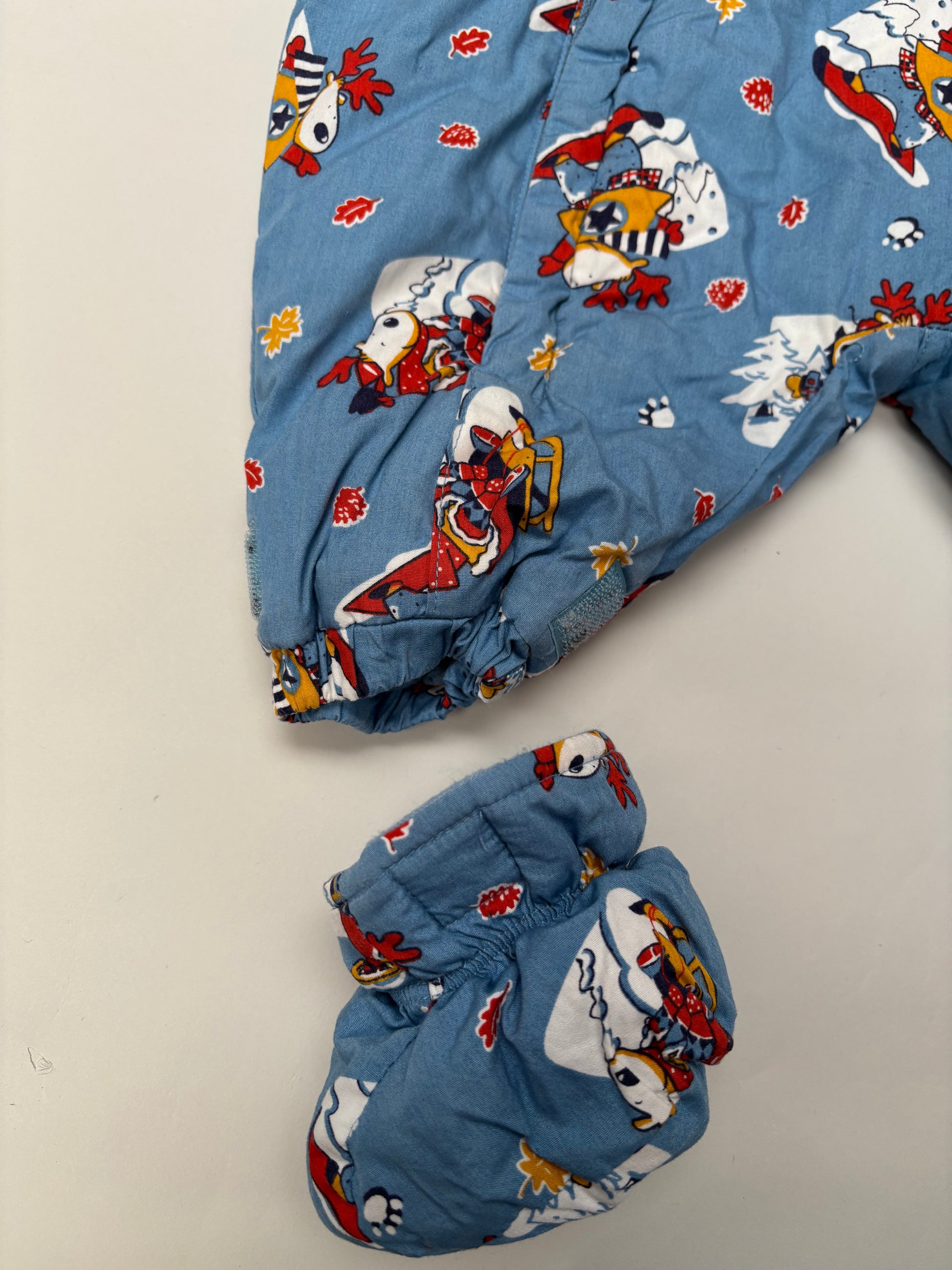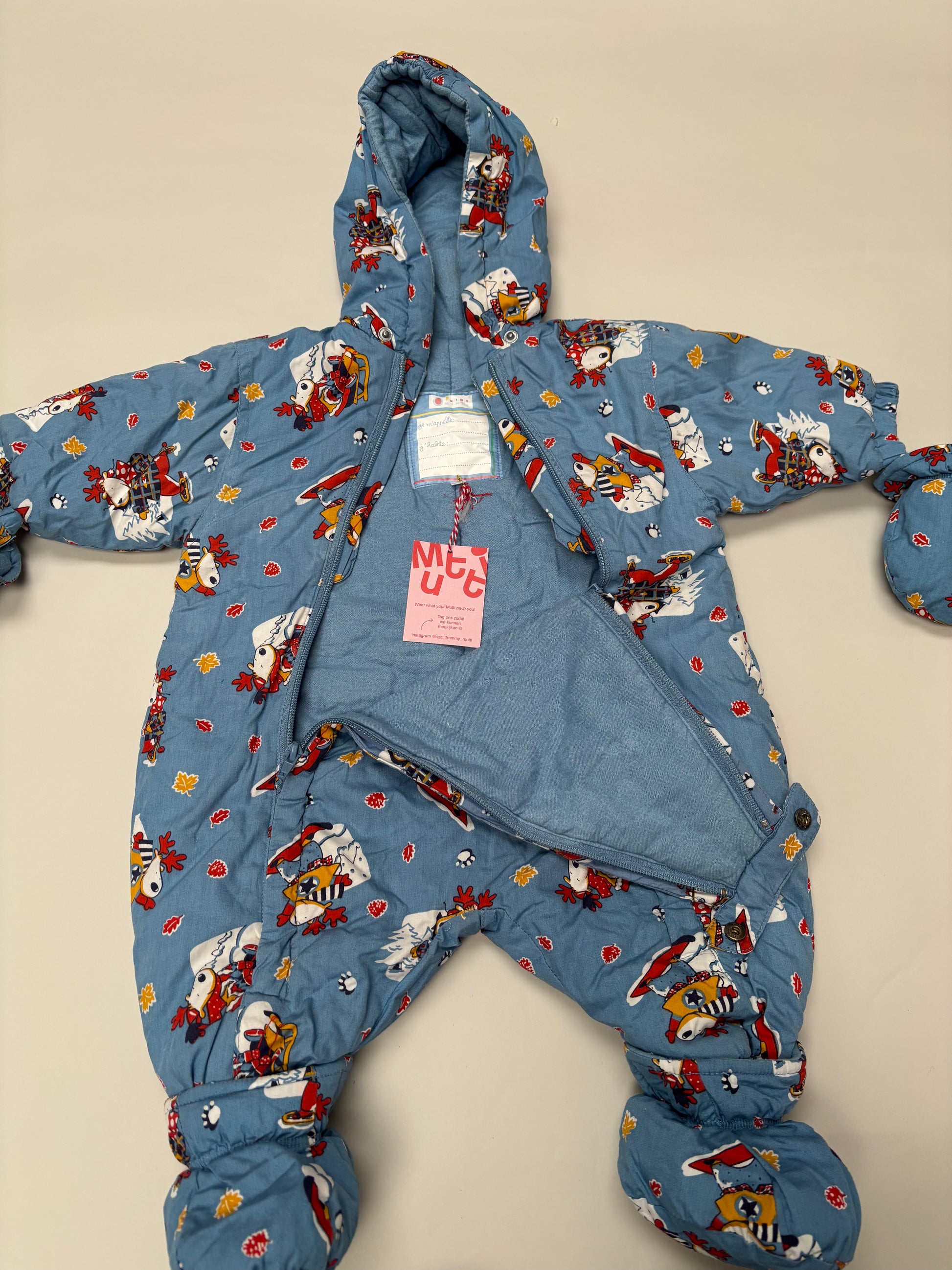 Super praktisch winterpak met sloefjes en wanten.